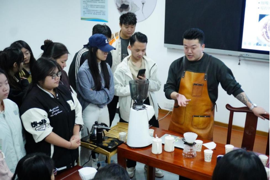 良木缘首席咖啡师吴强以“咖啡:从种子到杯子的跨界艺术”为主题,从咖啡的历史渊源讲起,通过生动的图文资料,展现咖啡从非洲原始部落的偶然发现,到如何通过贸易与文化交流风靡全球的历程。他特别强调了中国咖啡市场的现状,结合良木缘的品牌发展案例,深入浅出地解析了咖啡本土化创新的路径——如中西风味融合的“茶咖特调”、基于地域饮食文化的创意配方等,引发学生对咖啡产业与经济管理关联性的思考。
