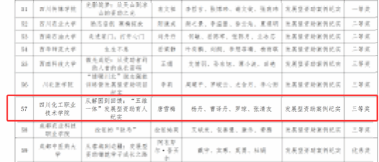 作品围绕“思想引领、技能提升、学业精进、就业创业、素质培养”五大维度,以“青年数智教育志愿服务青年突击队”为载体,推动“扶困—扶智—扶志”有机融合。通过精准认定、六位一体资助政策落实及心理辅导、学业帮扶、就业支持等举措,构建全周期发展型资助体系,助力学生从“受助者”走向“自助者”再到“助人者”。近年来,受助学生积极参与社会实践,服务20余所学校、15家企业、10余个社区,惠及群众超3万人次,并于2025年获四川省六大优势产业立功竞赛(赛育人)三等奖。