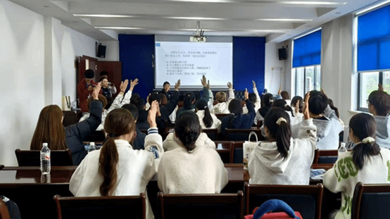 互动环节中,团总支与派出所民警共同设计安全知识抢答环节,围绕交通安全、防溺水、防诈骗等与团员青年息息相关的内容设置题目。团员们积极举手、踊跃抢答,现场氛围热烈高涨,答错的同学在民警和团总支工作人员的耐心讲解下补足知识短板,答对的同学收获定制小礼品,在轻松互动中巩固了安全知识,真正实现 “学中乐、乐中学”。