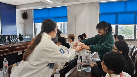 活动临近尾声,团总支负责人对本次主题团日活动进行总结,并再次向黄舣派出所民警的专业指导表示感谢。此次主题团日活动,将“生命安全”的理念融入青年思想引领,助力培养有安全意识、有责任担当的新时代青年。为表达对派出所长期以来守护校园安全的敬意,学院团向黄舣派出所赠送矿泉水、奶茶等慰问物资,用实际行动传递团学组织的温暖与感谢。