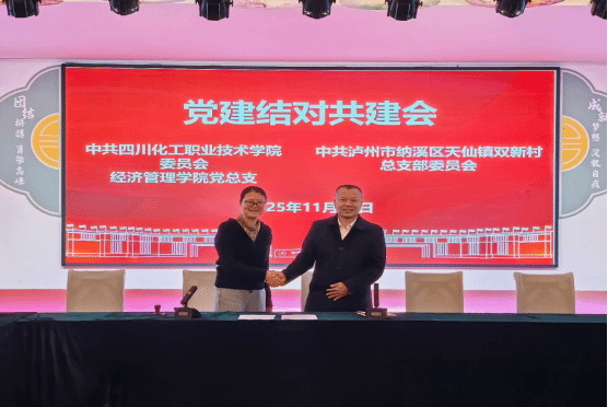 为促进乡村振兴,全面落实学校“1135”发展战略,积极探索创新党建工作,2025年11月12日,经济管理学院党总支与双新村总支部在纳溪区天仙镇双新村党群服务中心成功举行党建结对共建签约仪式。签约仪式由经济管理学院党总支书记张晋主持。