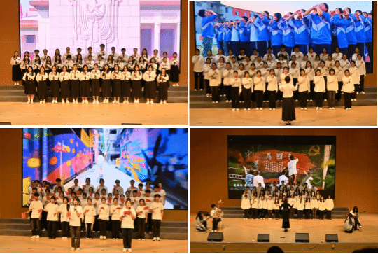 随着主持人热情洋溢地宣布活动开始,16个新生班级身着整齐统一的服装,迈着自信坚定的步伐,逐一登台亮相。首先,深情传唱校歌《化作光芒》,悠扬的旋律在报告厅内不停回荡,每一个音符都饱含着同学们对学校的热爱与敬意。随后,各具特色的自选曲目精彩上演,各班级经过精心编排和反复打磨,展现出了极高的艺术水准。从《我爱你中国》的深情告白,到《有我》的朝气蓬勃,每一首歌曲都凝聚着同学们的汗水与创意。同学们用歌声诠释着青春的活力与激情,仿佛在诉说着属于自己的青春故事。