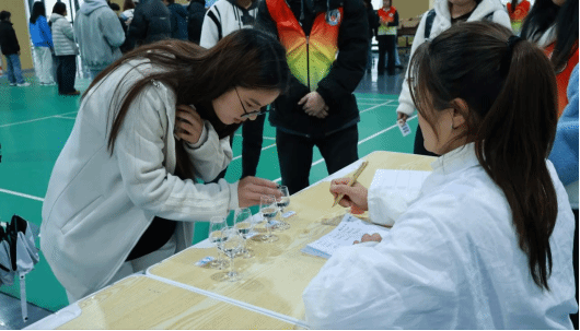 第一关“闻香型”:同学们通过嗅觉辨别白酒香型,在缭绕酒香中捕捉风味特征,展现专业基础;