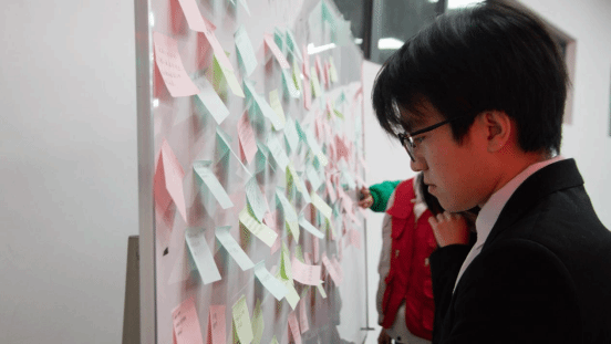 在互动交流环节,工作人员为每位观众发放便利贴。大家纷纷提笔,写上专业学习、生涯规划等方面的疑问,并有序粘贴至会场前方的白板上,三位国奖获得者随机抽取具有代表性的问题,耐心细致地一一解答,现场互动氛围热烈非凡。通过提问与解答的双向交流打破了经验传递的单向壁垒,形成了思想碰撞、智慧交融的良好氛围,进一步激发了同学们对标先进、追求卓越的内生动力。