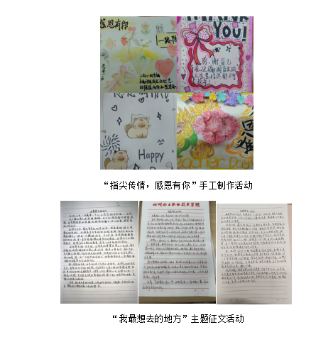 第二课堂认证中心开展“指尖传情,感恩有你”手工制作活动,90余名学生通过手作表达谢意;综合事务部组织“我最想去的地方”主题征文,收到投稿450篇,鼓励学生抒发理想、观照内心,促进心理健康与情感表达。