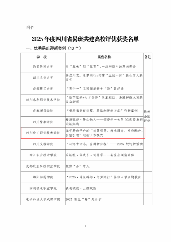 近日,2025年度四川易班共建高校优秀工作案例及展示评优结果正式公布。本次遴选及展示内容分为六个类别,每个高校推荐不超过四个类别。我校申报的四个类别全部获奖,荣获“优秀易班共建高校”“优秀易班共建案例”“优秀易班迎新案例”“优秀易班指导教师”四项省级荣誉,申报项目获奖率达100%。其中,我校《基于易班平台的“前置引导、精准服务、双线融合、价值引领”迎新工作模式》迎新案例,被推荐至全国参与评优。