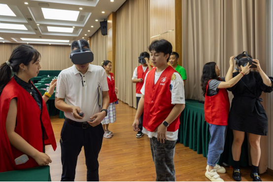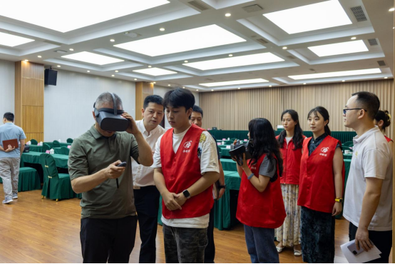 数字经济学院VR科普基地作为泸州市市级科普基地,积极承担社会科普责任,致力提高全民素质。他们充分发挥自身数智技术优势,通过自主研发的VR火灾逃生模拟系统,高度还原了办公室、楼道、电梯间等典型火灾场景。现场参训人员通过佩戴VR设备,在沉浸式体验中完成火灾报警、灭火器使用、应急通道辨识等实操训练,将传统的“听讲解、看视频”被动学习模式,升级为“动手做、亲身练”的主动学习模式,实现了消防安全知识从“入耳”到“入心”的深度转化。