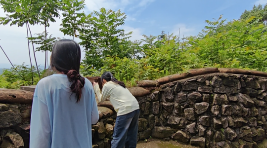 在战壕旧址,大家实地踏访革命先辈战斗过的场地,凹凸不平的地面、蜿蜒曲折的战壕,无声诉说着当年战斗的艰苦与惨烈,先辈们顽强不屈的革命精神令在场人员肃然起敬。师生们用脚步丈量壕沟长度,“1、2、3...50步,约35米!”这段看似短暂的距离所承载的历史重量引发众人深思。教师现场演示2米深战壕的防御功能,生动展现了当年战士们的斗争智慧;半蹲掩体后的战术讲解,则让军事策略的精妙之处跃然眼前;大家现场拾起砂岩碎块,体验就地取材加固战壕并找出土层中遗留的战争痕迹时,书本知识顿时化为触手可及的历史见证。