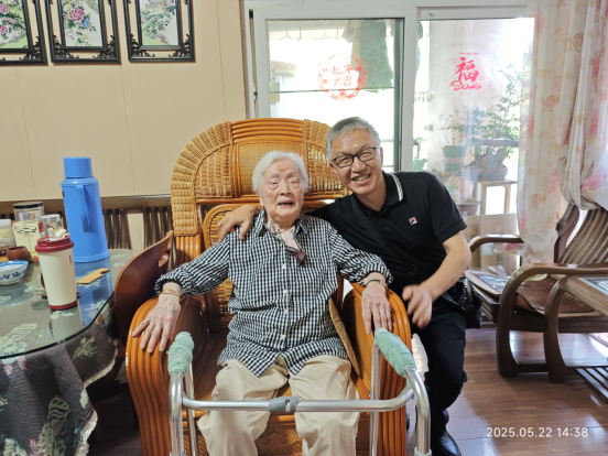 22日下午,慰问小组首先来到何练裳老人家中。见到久未谋面的“娘家”人,老人虽已年逾百岁,仍精神矍铄,拉着慰问组成员的手亲切交谈。周锦智代表学校向老人送上诚挚祝福,详细询问老人的饮食起居、健康状况和生活需求,叮嘱家属有困难及时向学校反映。何练裳老人连声道谢:“感谢学校这么多年的关心,我在这儿过得很好!”