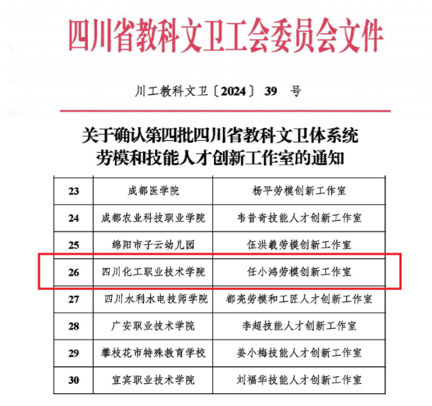 2024年12月10日,通过四川省教科文卫工会组织专家评审和综合考察,我校机械工程学院任小鸿教授团队获得“任小鸿劳模创新工作室”。