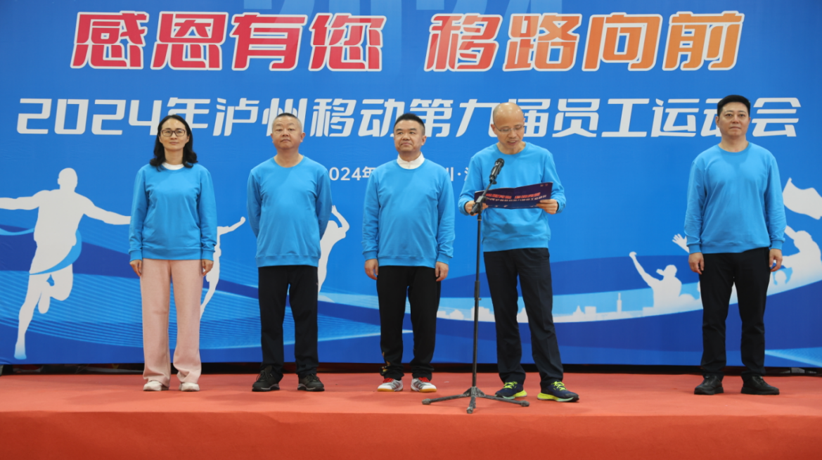 泸州分公司党委委员、副总经理、工会主席吴福强为运动会致开幕词,他希望大家在运动赛场上尽情挥洒汗水,发扬“更高、更快、更强、更团结”的精神,奋力拼搏,赛出精彩、赛出风采;全体干部员工要以本次运动会为契机,弘扬体育精神,把赛场上焕发出来的活力与激情转化为推动工作的强大动力,努力实现公司全年目标的达成和成功夺取春旺开门红。运动员代表和裁判员代表相继宣誓,宣誓词铿锵有力,展现了运动员勇力挑战和裁判员公平公正的信念。随着泸州分公司党委书记、总经理胡幼频一声令下,2024年泸州移动第九届员工运动会正式拉开帷幕。