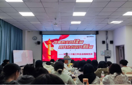 党的二十届三中全会是在以中国式现代化全面推进强国建设、民族复兴伟业的关键时期召开的一次十分重要的会议,是我国改革开放史上的又一个重要里程碑。新学期伊始,马克思主义学院面向所有任课班级,以《改革的实践续篇 现代化的时代新篇》为题进行专题授课,使党的二十届三中全会精神进课堂、进教学、进头脑。