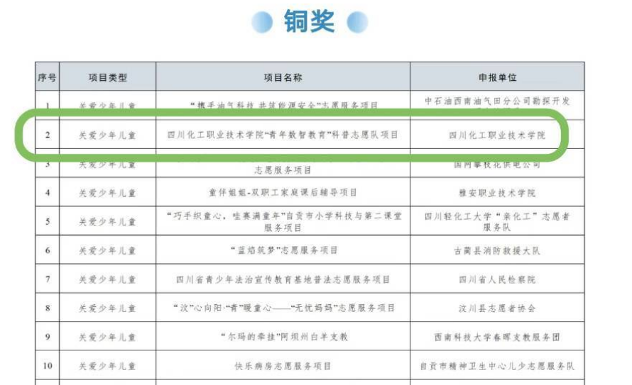 7月26日,2024年第七届中国青年志愿服务项目大赛四川省赛决赛圆满落幕,数字经济学院“四川化工职业技术学院‘青年数智教育’科普志愿队项目”经过初赛和决赛的激烈角逐,从全省150个项目中脱颖而出,荣获铜奖佳绩!