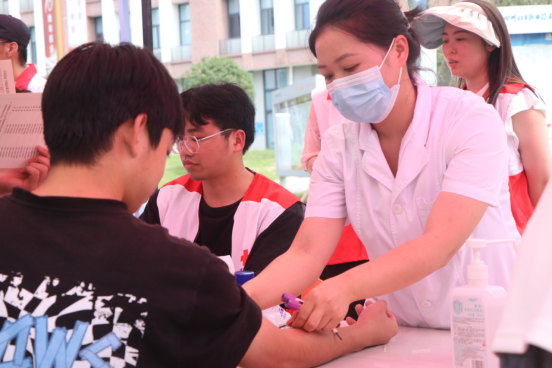 捐献活动开始前一天,泸州市红十字会工作人员对学校红十字会志愿者开展了相关培训,活动当天,还未开始,知食客食堂门前小广场就已聚集许多同学等候采血,下午两点,采血活动有序开始,活动现场,工作人员通过发放宣传手册、观看视频、答疑解惑等方式为大家讲解了造血干细胞捐献的重要意义、医学健康知识和捐赠流程,让大家对造血干细胞捐献有一个深入的认知,消除对捐献造血干细胞的顾虑。同学们纷纷踊跃报名,勇敢地挽起袖子,热情地加入到采集队伍中,他们仔细阅读、认真填写表格,用实际行动诠释了什么是大爱无疆。截止活动结束,共计100名同学成功进行了造血干细胞的血样采集。