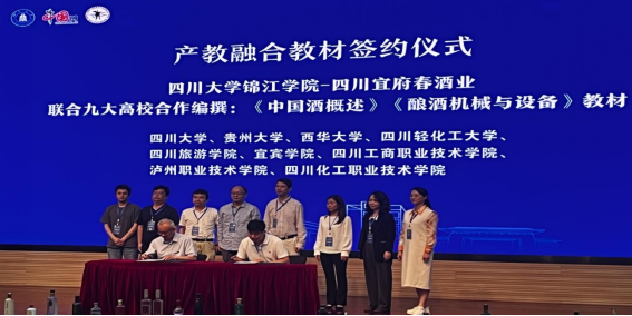 会议中,四川化工职业技术学院以参编单位合作编撰:《中国酒概述》、《酿酒机械与设备》教材并进行签约,积极推进产学研融合、校企合作的创新举措,为我校培养高素质酒类人才,加快发展酒业新质生产力提供了有力帮助。
