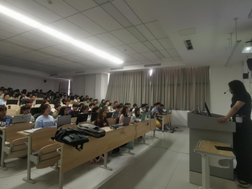 5月30日下午,数字经济学院邀请完美世界教育公司皮晓霞、于杰、孙家龙、杨琳老师一行4人到勤学楼11A403开展专题讲座,虚拟现实技术应用(以下简称“VR”)专业大二学生150余人参加,讲座由VR专业教师肖恺林主持。