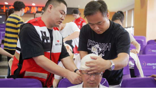 5月22日学员们完成了线上理论学习,5月23日参加了为期一天的线下实际操作培训和考试,在理论授课环节,培训讲师围绕红十字运动基本知识、应急救护概论、高质量心肺复苏(CPR+AED)、气道异物梗阻急救、创伤救护(止血、包扎等)、意外伤害急救(烧烫伤、骨折、溺水等)等知识进行了细致讲解,帮助大家在遇到突发事件时能够准确迅速采取有效急救措施,提高风险防范意识。在实际操作环节,培训讲师亲身示范心肺复苏CPR和体外除颤仪(AED)的实际操作,清晰演示了成功救护全过程,让大家意识到时间就是生命,掌握一定的急救知识至关重要,学员们积极参与心肺复苏、创伤包扎等实操演练中;最后,经过一天的培训,学员们进行了实操考核和理论考试,成绩合格者将获得红十字救护员证书。