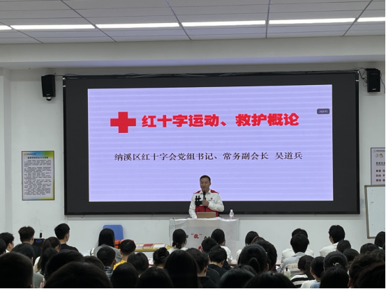 在学校红十字会高度重视,精心策划,有序组织下,共100名学生参加了本期公益培训班,红十字救护师资,泸州市纳溪区红十字会党组书记、常务副会长吴道兵出席并担任本期培训班讲师。