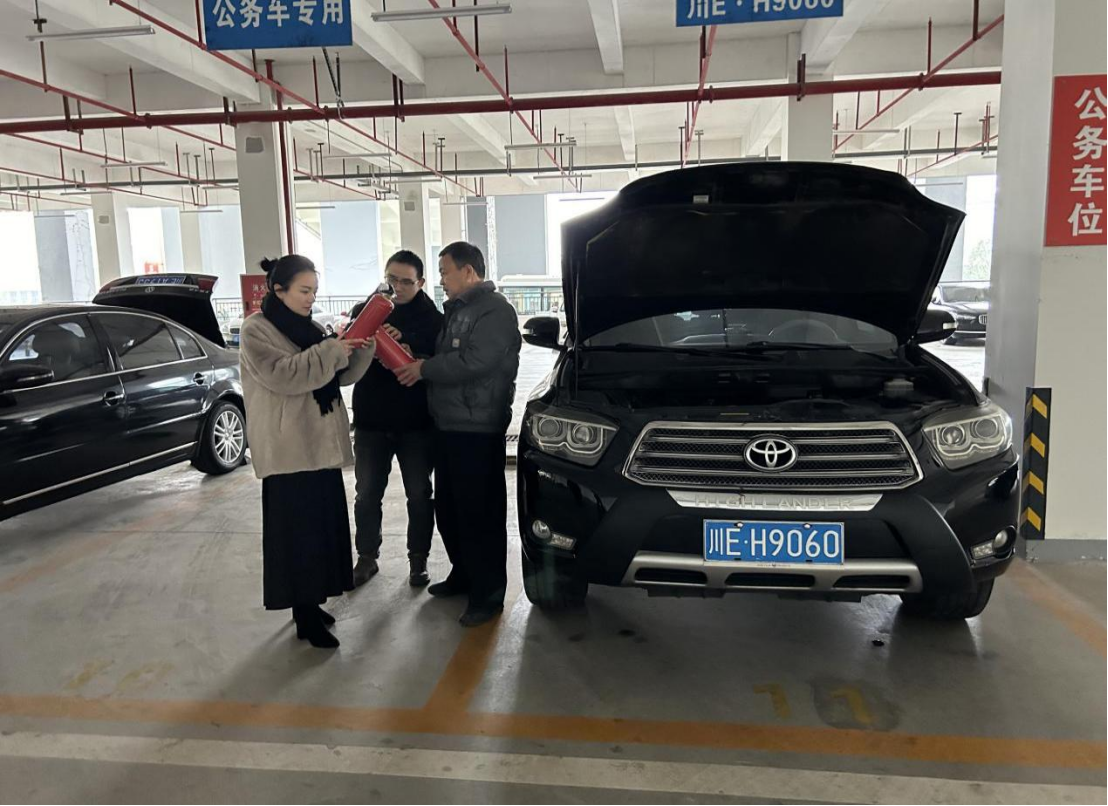 本次检查以实地查看的形式,对公务车的外观、灯光、发动机、灭火器、三角警示标志、轮胎等进行了全面检查,对会议室、报告厅、档案室、办公室等场所的门窗、水电、消防设施、线路线开关等可能存在的安全隐患进行了全面、严格、细致的排查,不遗漏一处死角,不放过一处隐患,确保寒假期间安全稳定。