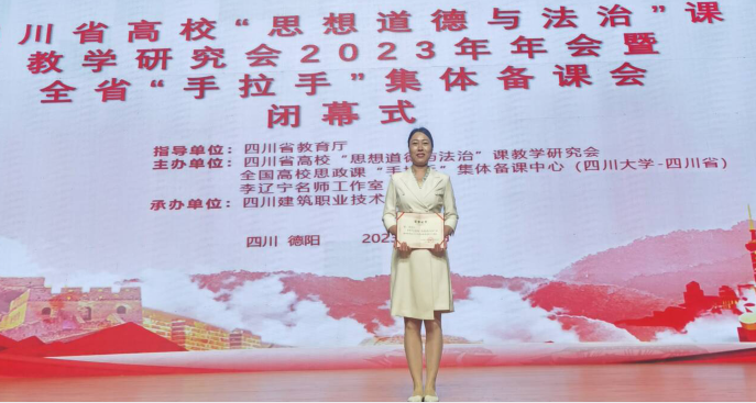 2023年12月16日至17日,四川省高校“思想道德与法治”课教学研究会2023年年会暨全省“手拉手”集体备课会在德阳举行,本次会议由四川建筑职业技术学院承办。我校马克思主义学院教师5人一行参会。本次会议分四个部分:专家主旨报告、主旨发言及经验交流、教学竞赛、实践活动。