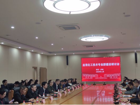 为深入贯彻落实《关于加快推进现代职业教育体系建设改革重点任务的通知》文件精神,进一步深化产教融合、校企合作,加强应用化工技术高水平专业群建设,11月12日下午,应用化工学院在综合楼107会议室召开了应用化工技术专业群建设研讨会。应用化工学院徐淳院长、副院长何风、党总支副书记屈超、应用化工技术专业群教师代表、泸天化(集团)有限责任公司以及万华化学(四川)有限公司为代表的25家现代化工企业的40余名专家领导参加会议。会议由何风主持。