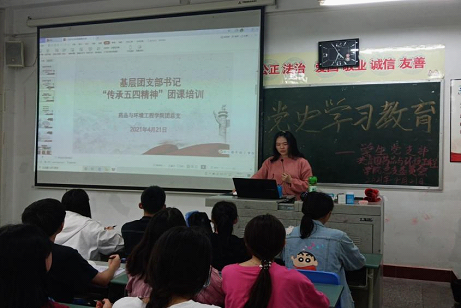 为积极响应学校团委“学习四史”的号召,加强团学学生干部、推动班级团组织党史学习教育活动,加强团学学生干部、基层团支部书记职责使命感,明确自己的主责主业,开展好班级团支部团组织生活会。年4月21日,药品与环境工程学院团总支在综合楼A区307开展了“不忘初心,弘扬五四精神”党史学习主题团课培训会。会议由学院团总支书记苏双双主持,院团总支、学生会各部门负责人,19级、20级团支部书记参加培训会。