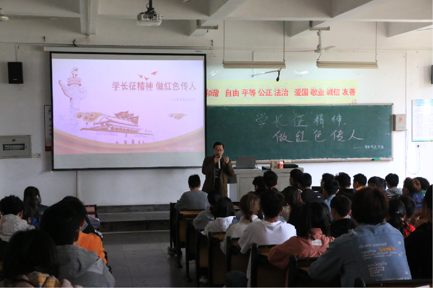 近日,智能制造学院在实A106举行“学长征精神,做红色传人”学习讲座,本次讲座由智能制造学院彭毅副院长主讲,智能制造学院全体入党积极分子、党员、青马班成员及学生会干部参加讲座。