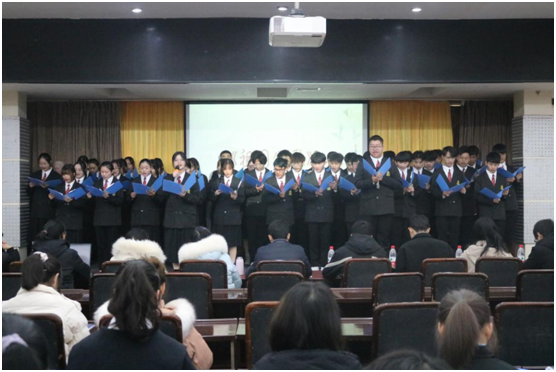 为隆重纪念“一二·九”爱国运动,弘扬民族精神,引导同学们继承胸怀祖国,奋发进取的优秀品质,2020年12月16日,数字经济学院在学校行政楼五楼会议室举行了“一二·九”爱国诗歌朗诵比赛。数字经济学院团总支书记魏杰、陈启刚老师、乔鸿老师、干艳燕老师以及数字经济学院主席团成员担任大赛评委。