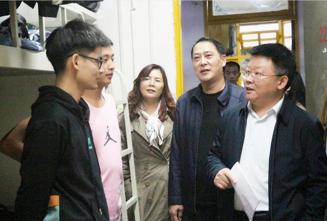为帮助2020级新生尽快适应新的学习生活环境,了解同学们的需求,解决实际问题,让新生感受到学校对大家的关心。10月11日晚,学校文申柳副院长带队,学生处苏坤副处长,药品与环境工程学院党总支李光荣书记、张欣院长、苏翔副院长、李克嵘副院长、全体专兼职辅导员、专业负责教师下寝室走访慰问2020级新生。
