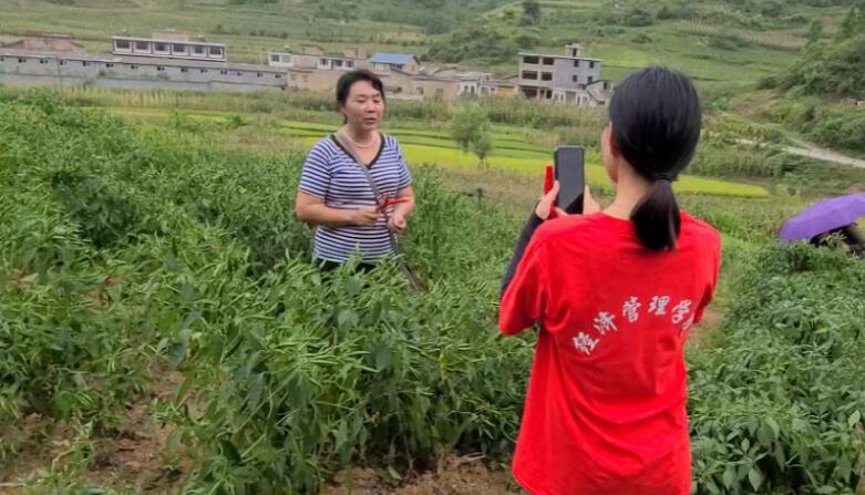 活动中,暑期社会实践小分队师生顶着烈日,积极参与到采摘辣椒的劳动中,与当地村民一起采摘鲜红的纯天然辣椒。同时,队员们分队利用自身专业知识,拍摄视频和图片收集素材,并利用经管学院抖音公众号进行了直播带货宣传,驻村第一书记牟均和致富带头人徐艳也在直播中介绍了当地辣椒的特性,更好地宣传当地的辣椒。