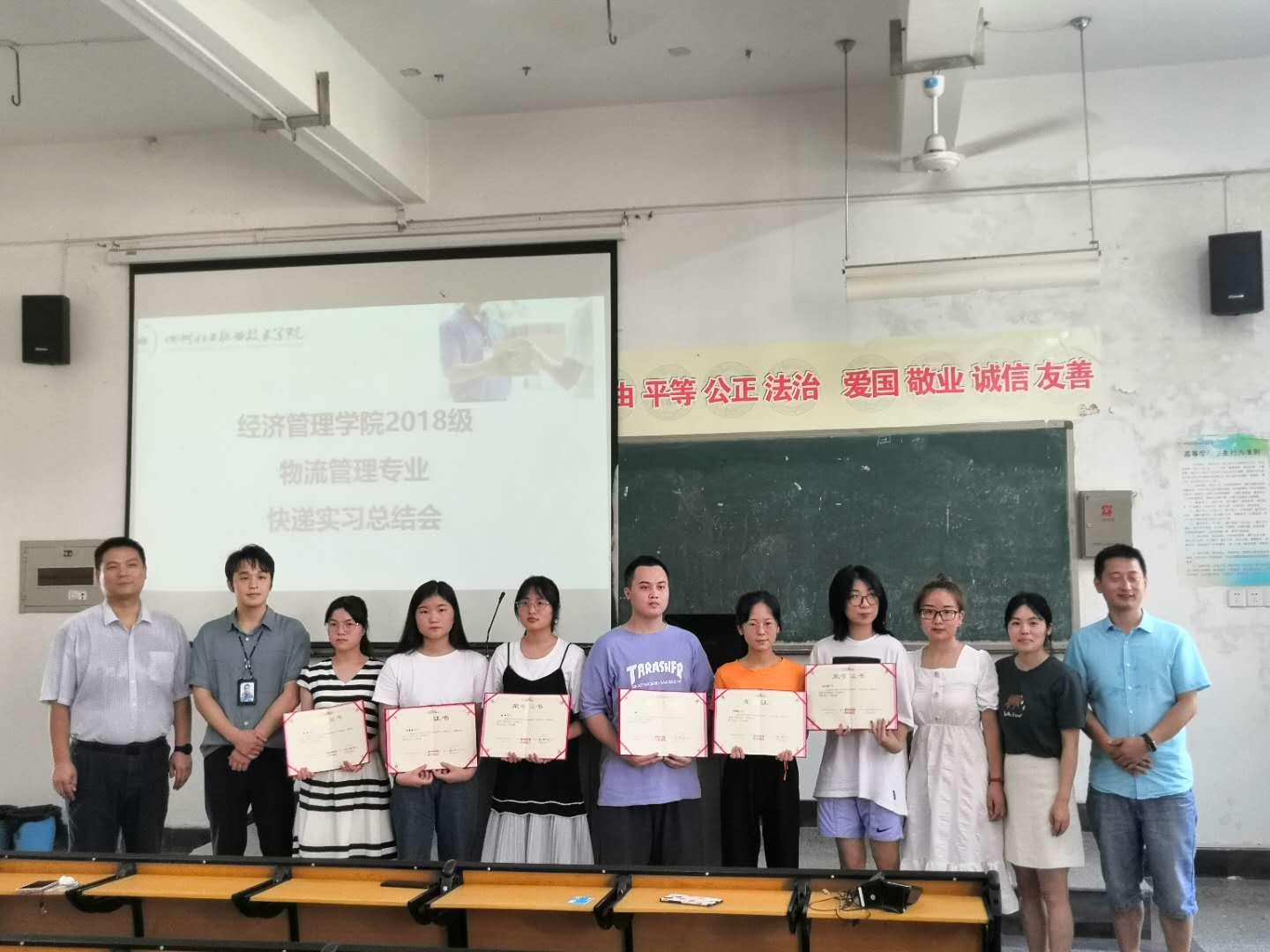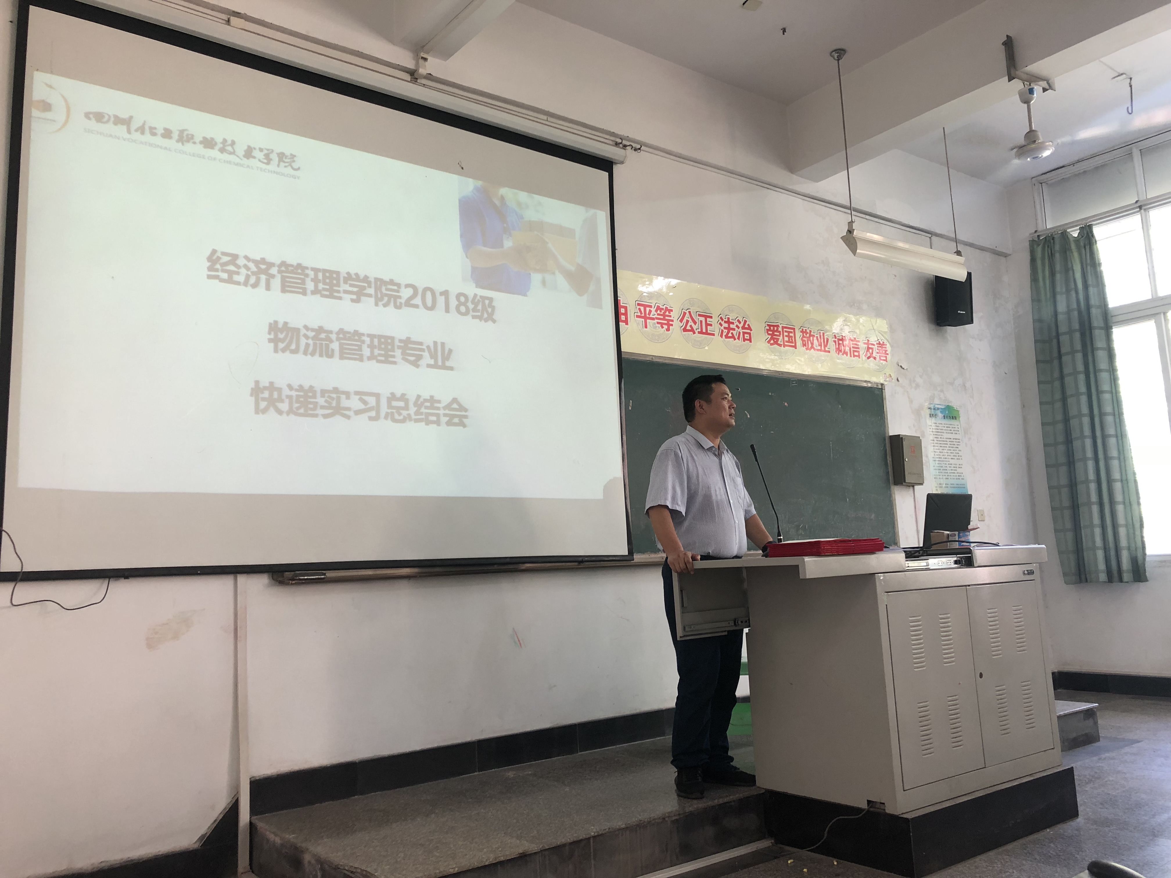 为总结学生专业实习效果,检验实习实训教学成果,2020年7月3日下午,物流管理专业18级在实训楼召开了快递实习总结会,经济管理学院马小洪副院长、物流管理专业教师、顺丰泸州龙马潭区经理邓萌、一号物流创业负责人出席了本次会议。