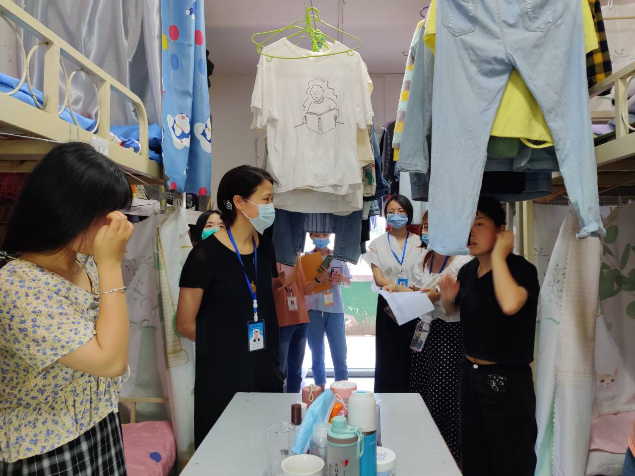 在检查走访过程中,老师们还提醒同学们要时刻做好宿舍安全工作,安全常识要牢记于心,并对发现的安全隐患及时进行了批评整改。经济管理学院副院长窦宇强调,当前仍是疫情防控的关键时期,学校实行封闭管理,希望同学们加强自我管理,自觉遵守学校规定,不扎堆不聚集,提升安全防范意识,养成健康文明、积极向上的生活习惯,营造干净舒适的生活环境。