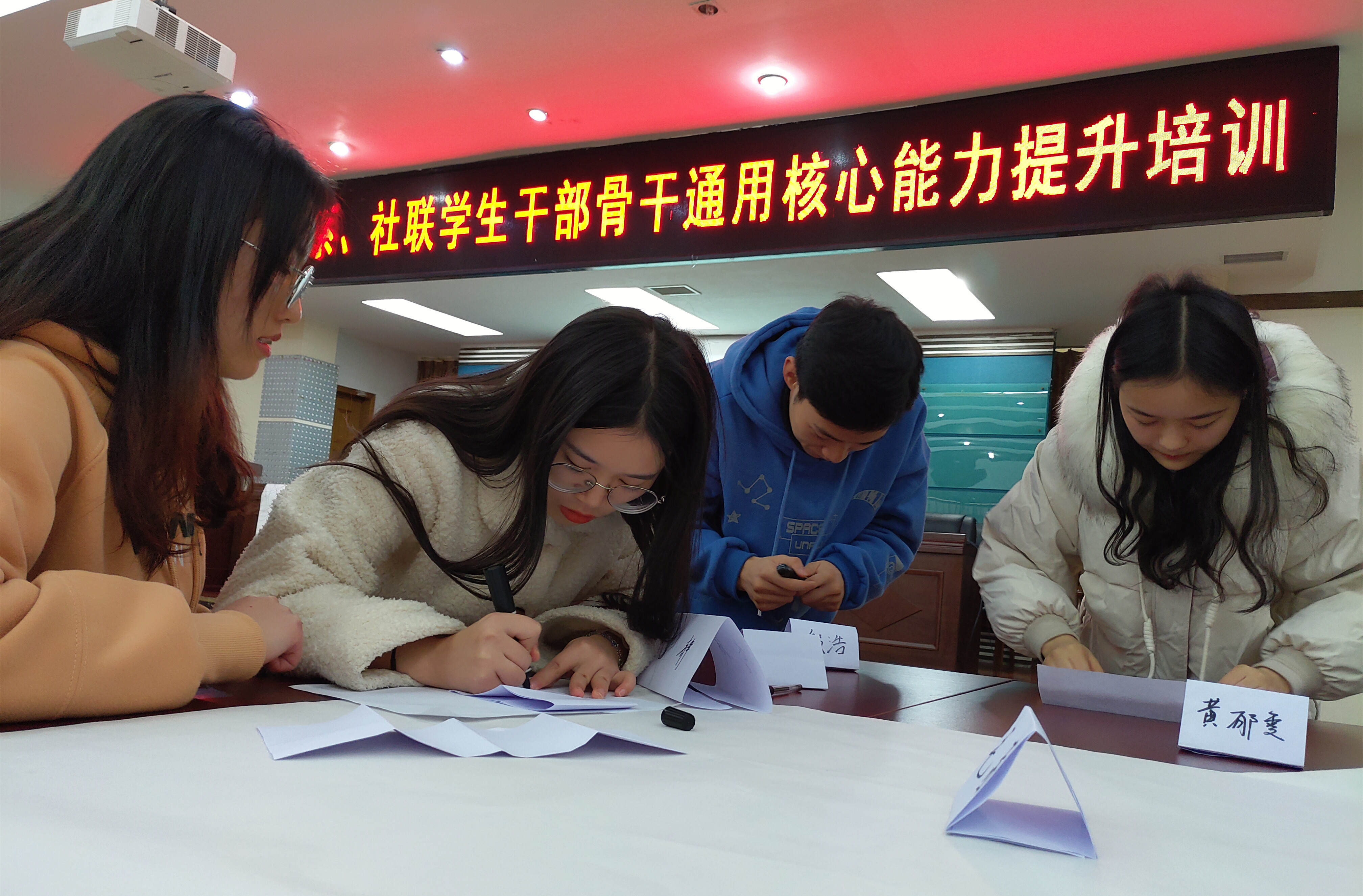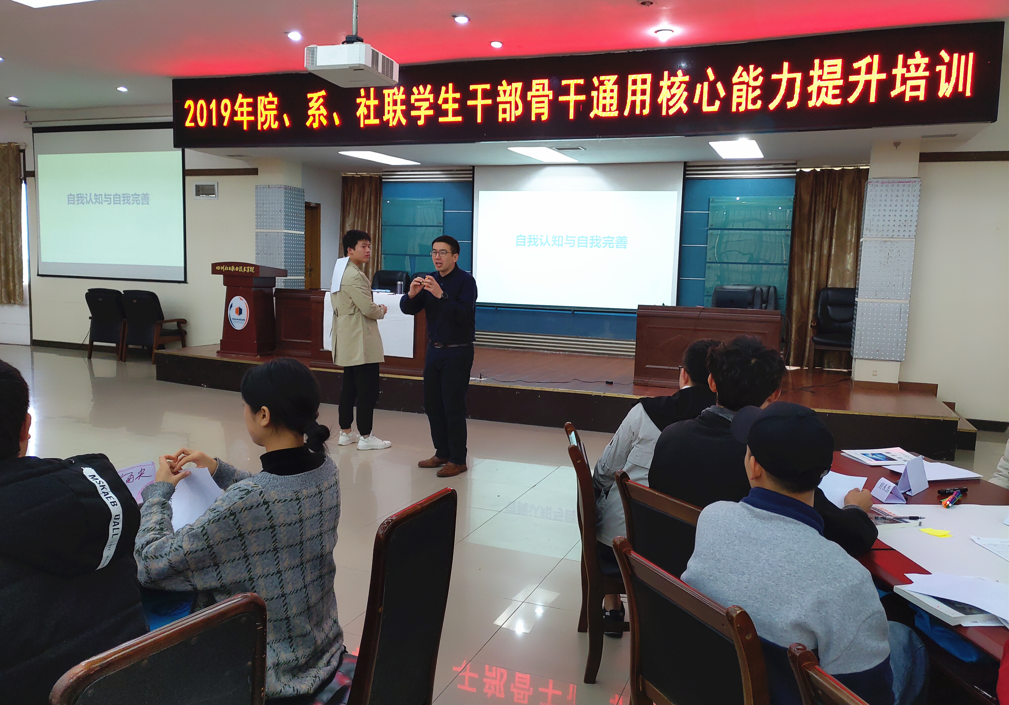 为提高学院学生干部骨干的综合素质和能力,强化学生干部服务同学的思想意识,端正工作作风,提高执行力,学院团委于12月22日在行政楼五楼会议室对新一届院、系、社联48名学生干部骨干开展了为期一天的通用核心能力提升培训。