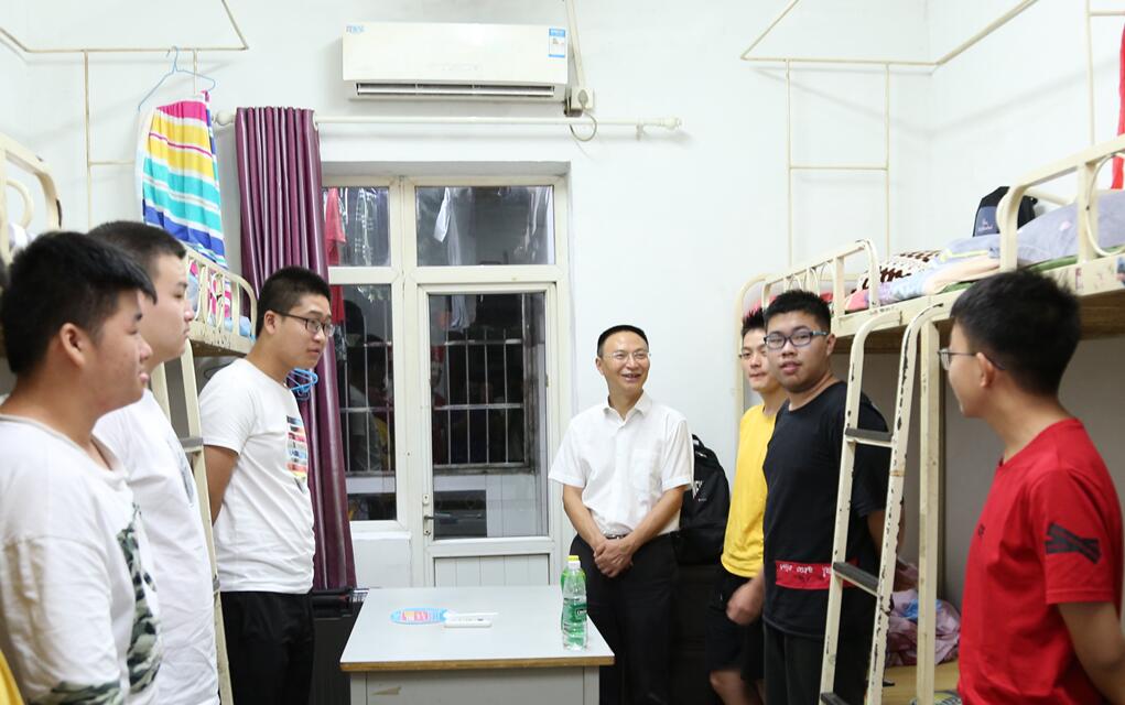 8月29日至30日,是我院2019级新生报到的日子。8月30日晚,学院领导和学生处、团委、各系负责人一同前往学生寝室,看望慰问2019级3200余名新同学。