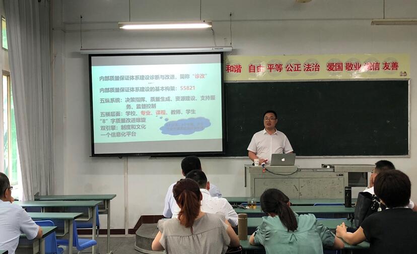 学院督导室刘文教授围绕“国家职业教育改革实施方案”“《悉尼协议》的核心理念”“如何提升课堂教学质量?”“上课要求”“教学质量评价”等五个方面,对新学期特别是开学初教学工作的主要目标、关键环节和注意事项进行了详细讲解。通过刘教授的培训,大家对强化以学生为中心的理念落实到行动,以内涵式发展和质量提升为主线,加强课堂规范化管理,不断提高教育教学质量有了进一步的认识。