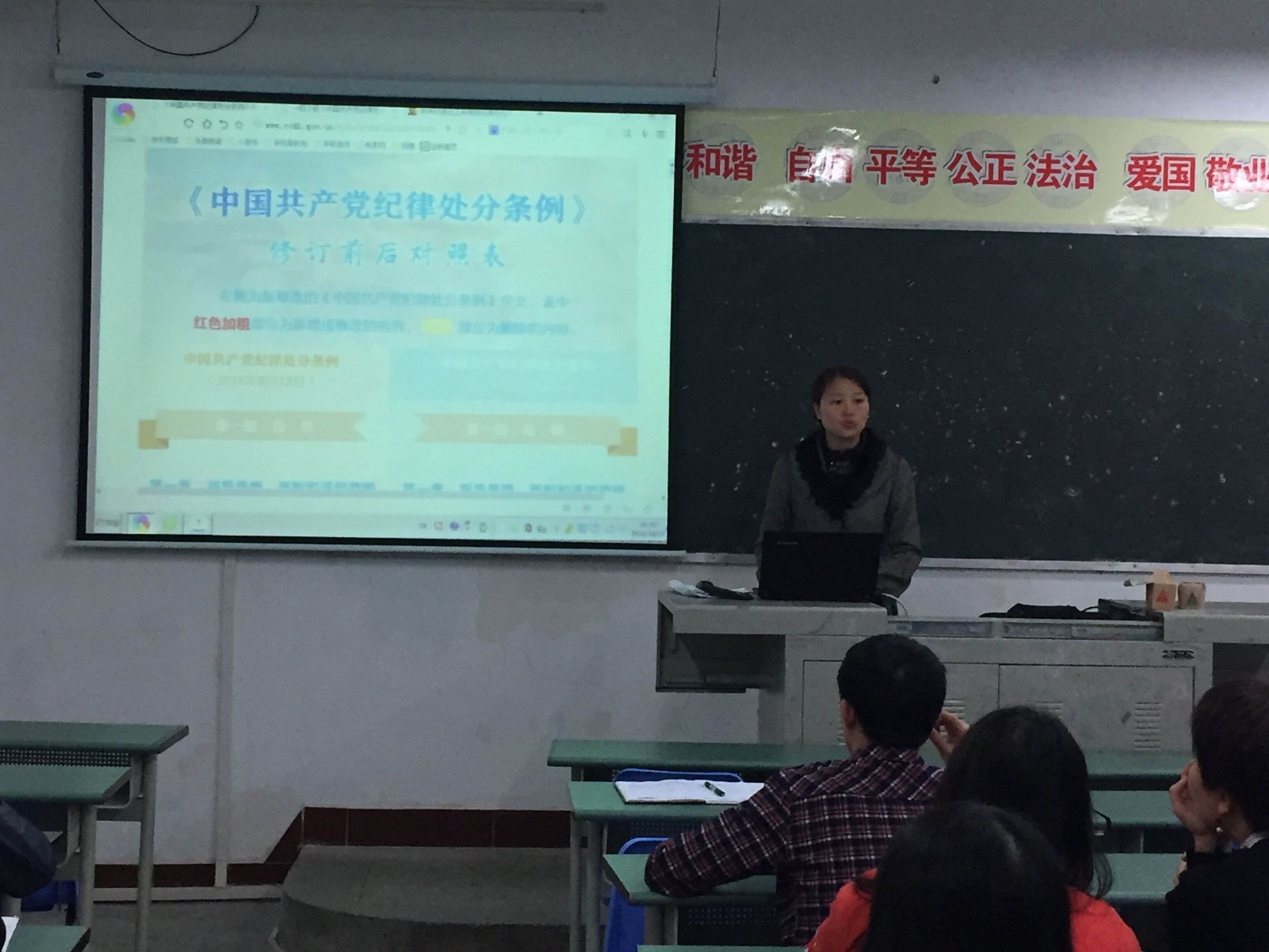 会上,全体教师首先从《条例》的背景意义、修订前后对照表、内容结构、八大亮点、纪律底线、必学条款六个方面进行了深入学习。随后,张晋副书记结合外出到江苏省示范性高职院校徐州工业职业技术学院进行基层党建工作学习的情况,对系部师资队伍建设、教学科研开展与党建阵地建设等方面的工作进行了部署。