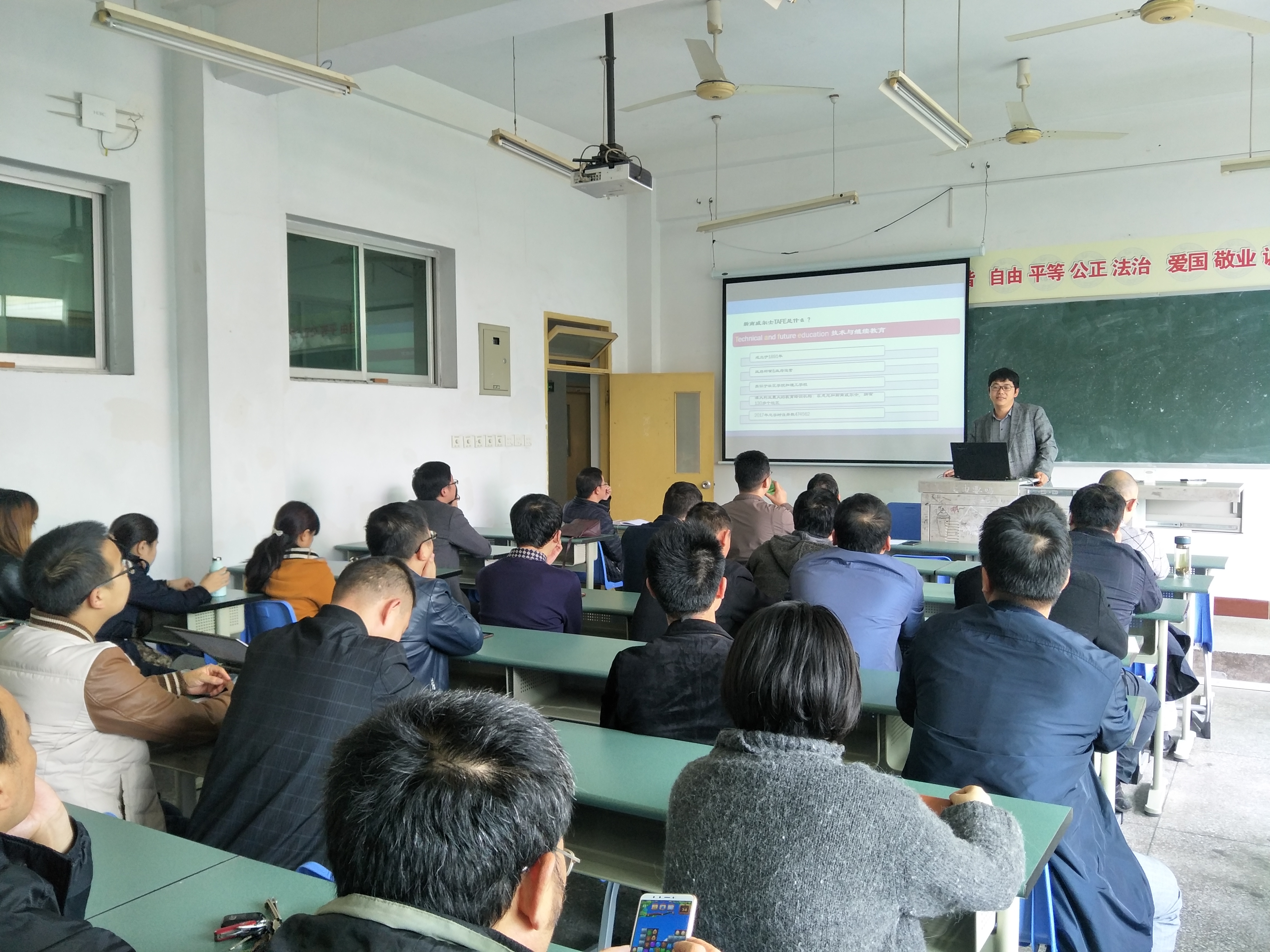 10月17日,由周林军老师代表机械工程系赴澳大利亚参加培训的教师团队,在综A404与机械工程系全体教职工分享了培训心得体会,现场还进行了深入交流,会议由机械工程系副主任任小鸿主持。