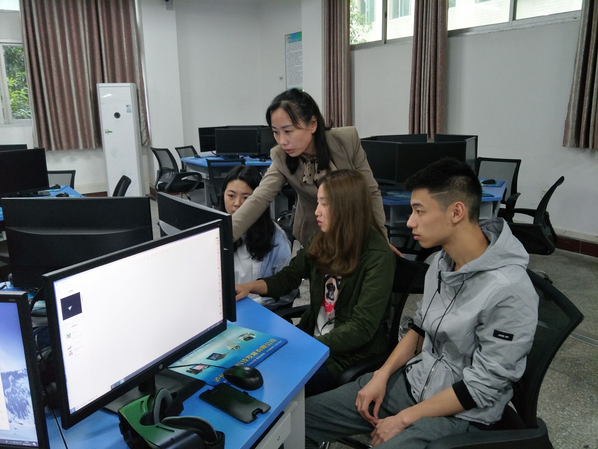 我院信息工程系VR专业建设起步早,基础设施和师资在省内都有优势,成职院谢菁老师专程带队前来我院进行赛前培训。培训期间,成职院参赛选手认真练习,并就VR编辑器设置、镜头动作、交互设计等问题积极向我院VR专业教师请教,我院老师对选手们提出的问题作了耐心细致解答,并结合场景开发提出了指导意见和建议。