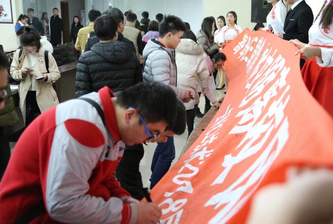 离校欢送会在同学们铿锵文明的宣誓声中拉开了序幕。文明离校,感恩母校、社会担当,以己长服务社会是他们的庄严承诺。会上,优秀毕业生代表分享了自己三年大学生活的经验和感悟,表示将以时不我待的紧迫感,只争朝夕的精神,舍我其谁的担当迎接世界的挑战;大二学生代表对师兄师姐表达了深深的祝福;教师代表通过诗篇表达了各专业教师和辅导员对毕业生的祝福和希望。欢送会在化工系主任的殷切希望中落下帷幕。全体毕业生在文明离校的条幅上签下了他们的承诺与期盼,誓将以永不懈怠的精神状态和一往无前的奋斗姿态投入到祖国复兴的伟大工程中去。