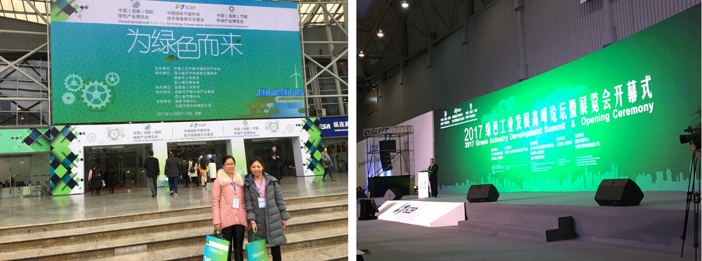 2017年12月8日至10日,制药与环境工程系环境工程专业教师受邀参加了在成都举办的“2017中国国际节能环保装备展示会”。此次节能环保展示会由中国工业节能与清洁生产协会主办,由四川省经济和信息化厅、成都市人民政府等承办,包括三个方面内容:中国(成都)国际绿色产业博览会、中国国际节能环保技术装备展示交易会及中国(成都)节能环保产业博览会。