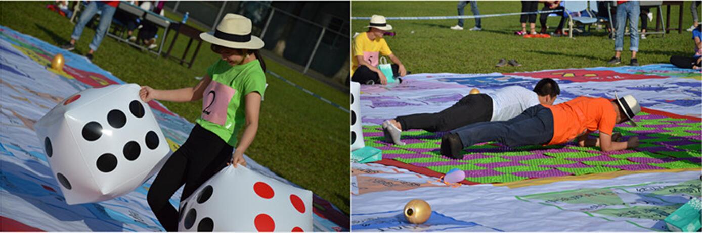 比赛所用的棋盘,是由经管系学生会参照大学生活独立设计完成,涵盖了专业学习、套读本科、勤工俭学、参与第二课堂活动等方方面面,旨在以寓教于乐的形式,引导同学们思考如何充实地度过大学生活。比赛中,更有需要团队合作完成的互动项目,紧张激烈的比赛现场欢声笑语连连。
