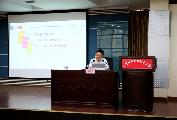 为贯彻落实《教育部办公厅关于建立职业院校教学工作诊断与改进制度的通知》、《高等职业院校内部质量保证体系诊断与改进指导方案(试行)》、《四川省高等职业院校内部质量保证体系诊断与改进实施方案(试行)》和《四川省高等职业院校内部质量保证体系诊断与改进操作规程(试行)》的要求,建立学院常态化自主保证人才培养质量机制,促进学院完善内部质量保证体系,提高质量保证工作成效,提升学院人才培养质量,6月28日上午,学院召开了内部质量保证体系诊断与改进工作报告会,学院全体教职员工参加了会议,会议由学院院长杨宗伟教授主持。
