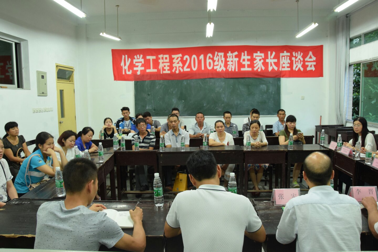 9月1日晚7点,在忙碌了一天的迎新工作之后,化学工程系在学院综合楼A301教室组织召开了2016级新生家长座谈会。张宏主任、邓子萍副书记、李晋副主任相关专业老师及30余名新生家长参加了本次会议。
