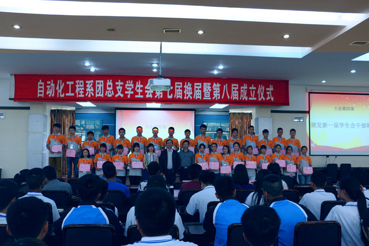 近日,自动化工程系举行团总支学生会换届仪式,出席本次仪式的有系主任陈昌涛、系党总支副书记彭毅、系团总支书记冯丽萍、学生会指导老师及团总支学生会新老成员。