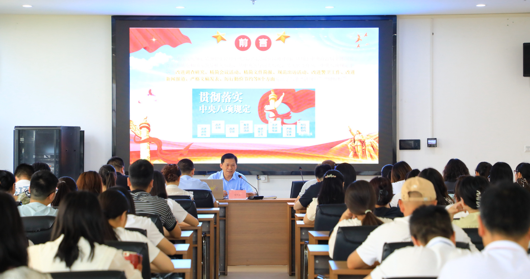 为深入贯彻落实习近平总书记关于党的自我革命的重要思想和中央八项规定精神,持续推进党的作风建设,2025年6月11日,学校党委书记邓华云以“锲而不舍贯彻中央八项规定精神,推进新时代党的作风建设”为题,为马克思主义学院直属党支部、基础部直属党支部、应用化工学院党总支全体党员上了一堂深刻的教育党课。