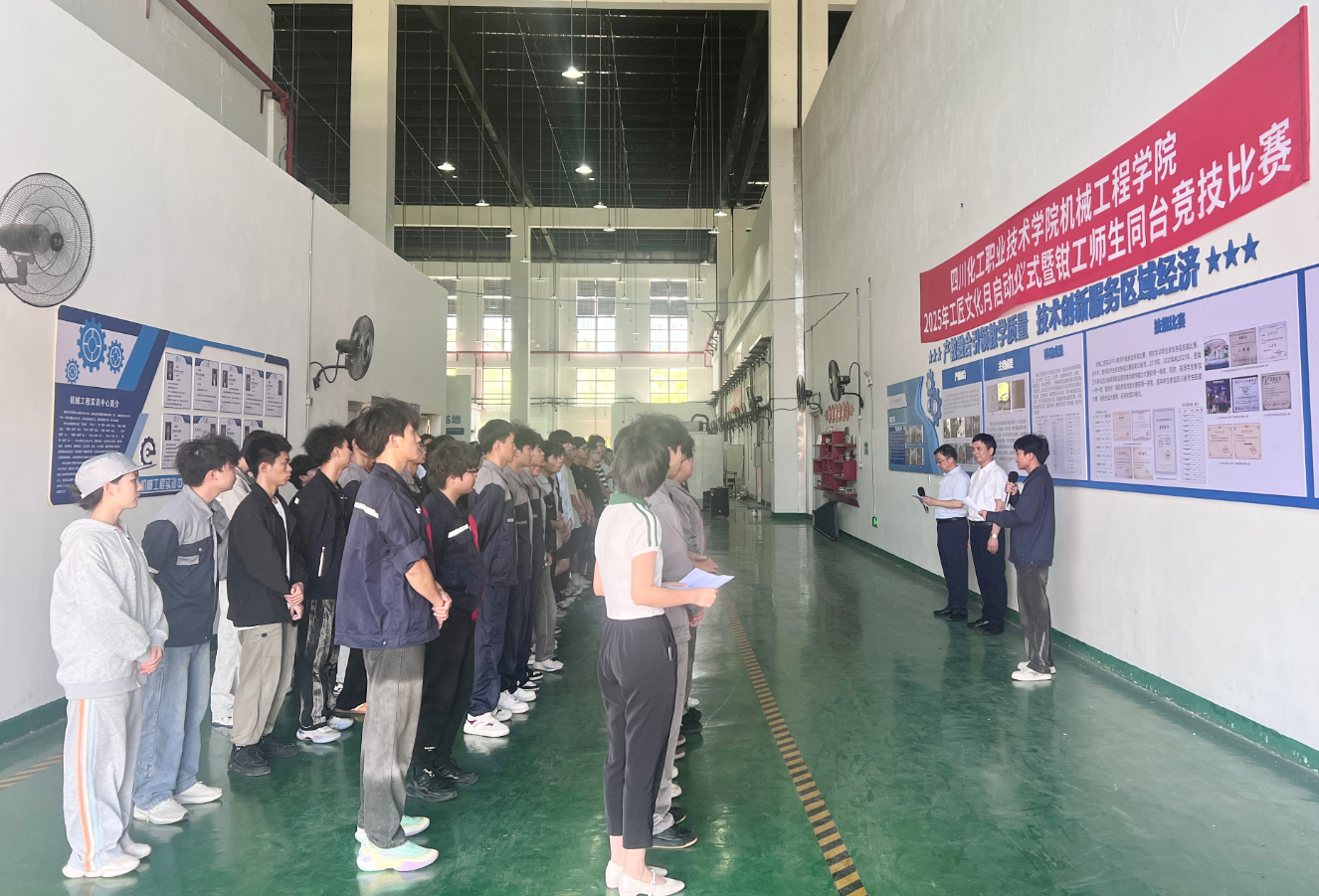 5月21日下午,由学校工会主办、机械工程学院承办的四川化工职业技术学院2025年第二届工匠文化月启动仪式暨钳工师生同台竞技比赛在工程实训中心举行。学校党委副书记、纪委书记、工会主席郑辅春,机械工程学院副院长陈玲及师生代表参加了启动仪式。仪式由机械工程学院院长任小鸿主持。