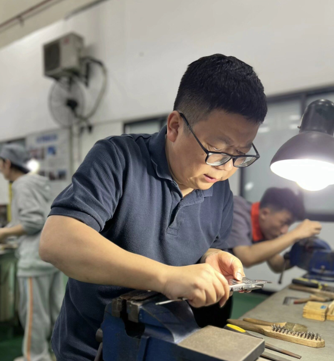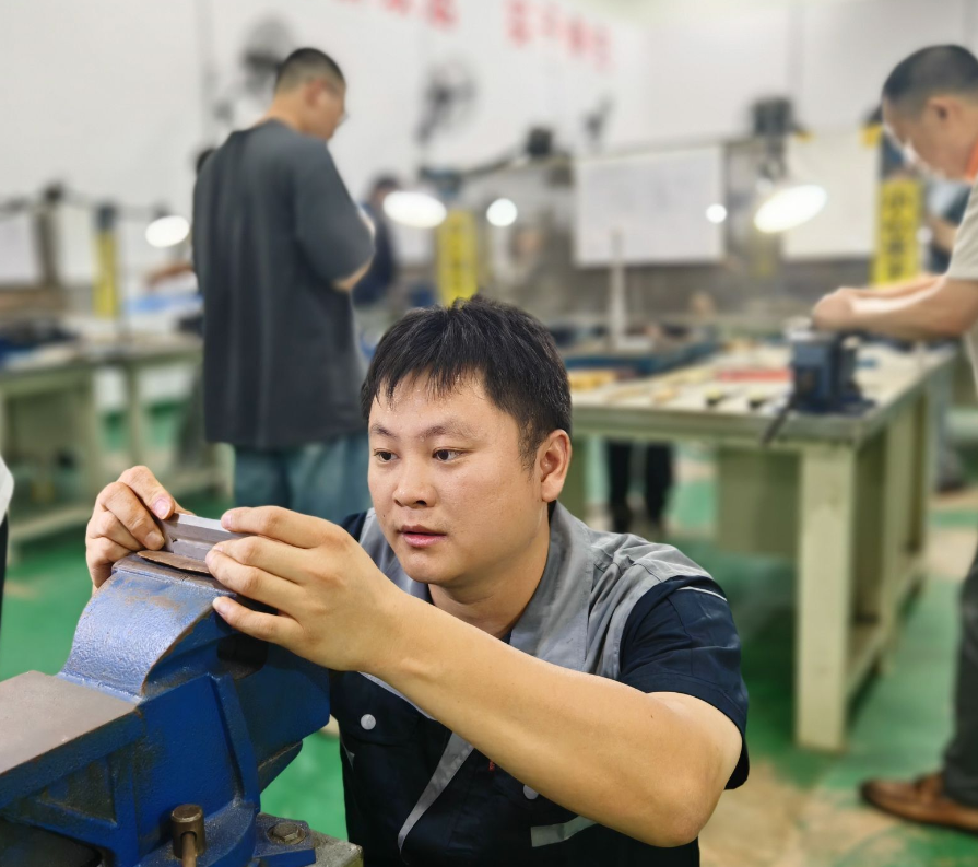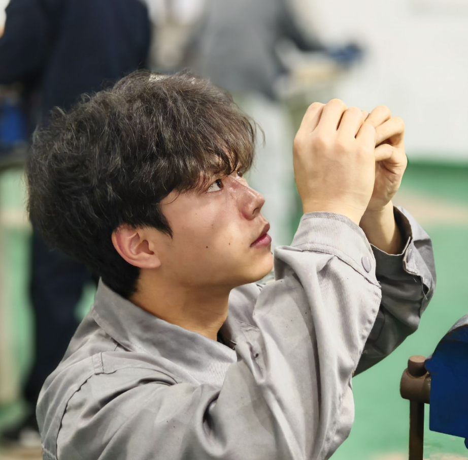 启动仪式后,钳工师生同台竞技比赛正式开赛。赛场上,师生们全神贯注,熟练地操作着工具,展现出扎实的专业技能和专注执着的工匠精神。此次比赛不仅是技能的较量,更彰显了师生对工匠精神的执着追求。