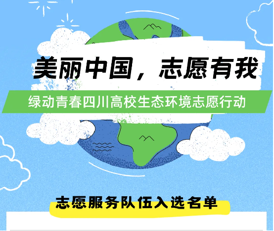 为深入学习贯彻习近平生态文明思想,推动生态环境志愿服务事业发展,四川省生态环境厅联合共青团四川省委启动“美丽中国,志愿有我——绿动青春四川高校生态环境志愿行动”,号召全省高校组建志愿服务队伍,引领青年投身生态文明实践。活动吸引76所高校的381支队伍踊跃申报,最终44所高校的50支队伍脱颖而出。学校“碳”索青绿志愿服务队凭借突出贡献与责任担当,荣耀入选!
