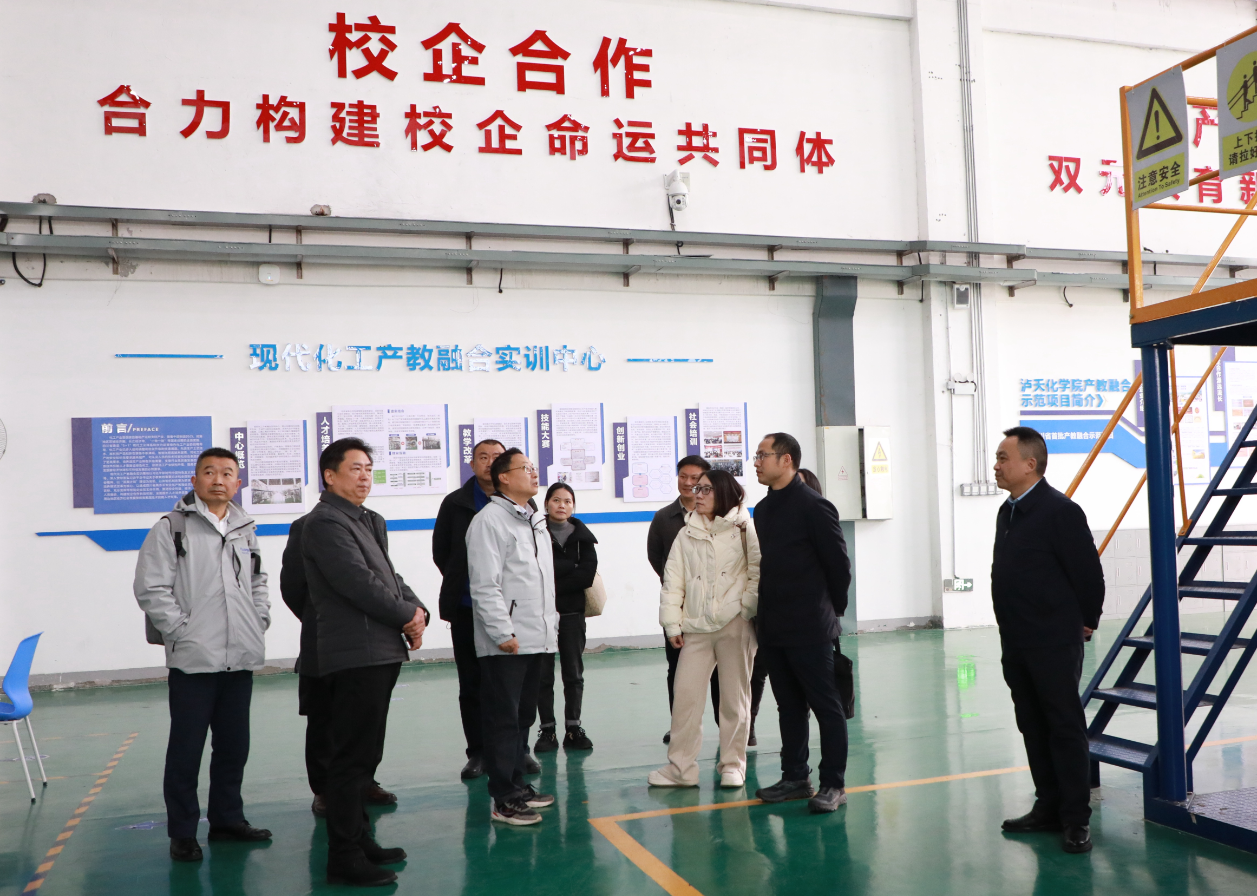 会前,袁富强、方舟、王政一行先后到智能制造学院生产性实训基地、应用化工学院现代化工产教融合实训中心、校史馆等地进行实地参观调研。