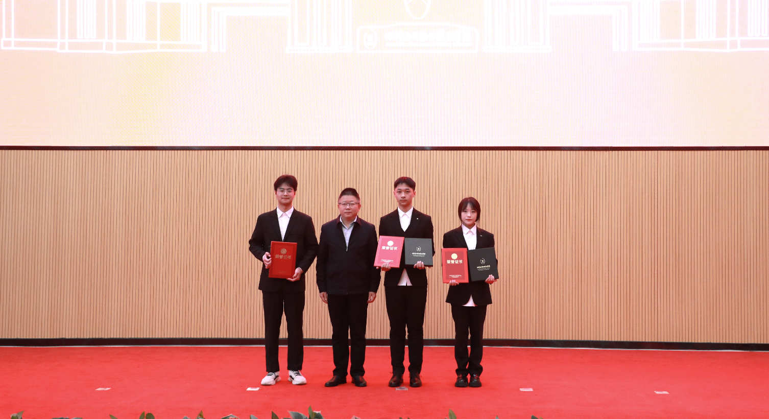 与会领导为获奖学生代表颁发了荣誉证书和奖牌。